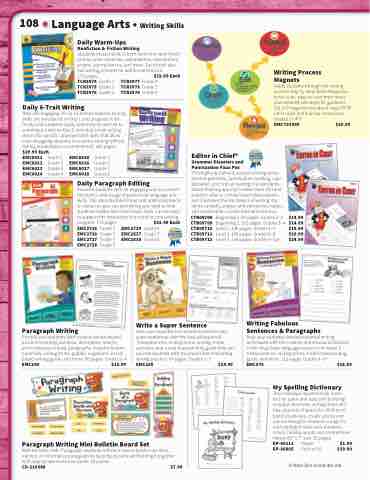 Help your students develop essential writing techniques with the creative and structured lessons in this must-have language resource! Includes 9 transparencies, writing forms, a trait-based writing guide, and more. 112 pages. Grades 4–6+