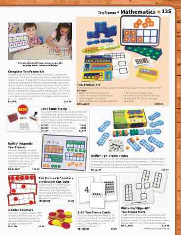 Tough, flexible plastic mat has ten-frame and number bond outline on one side and two ten- frames on reverse. For use with dry-erase markers. Mats measure 9" x 12". Pack of 10. Grades K–2 DD-211441 $14.99
