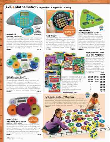 Practice multiples, math facts, factors, factor pairs, and sequencing with five slammin’ math games in one! Questions appear on the LCD screen and nine colorful paddles display possible answers. Kids read the questions and slam the correct answer—a fun, physical play pat- tern. Ticking clock and rockin’ rhythm keep kids engaged. Requires 3 “AA” batteries, not included. Grades 3+ EI-8477 $44.99