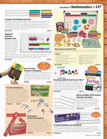 Activities begin with the basics of prime and com- posite numbers and move up to multiplication and division of fractions. Set contains 180 color-coded foam 1" tiles, 3 Factor Finder cards, 13 activities (with links to more activities online), and a comprehensive teacher instruction guide. Grades 3–5 1 DD-211282
