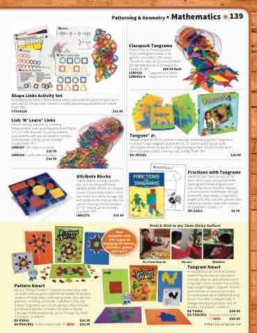 Are you “Pattern Smart?” Compete to determine who can build and recognize patterns the fastest! As players advance through three challenging levels, they develop patience, creativity, and math confidence. Plus, the unique cling pieces stick to any glossy surface for play just about anywhere! Includes 213 pattern blocks,