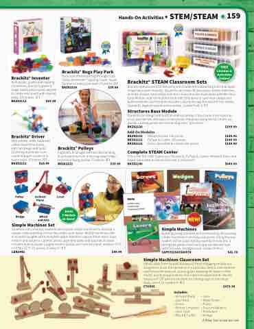 Brackitz opens a world of discovery with planks and connecting hubs that spark imagination and creativity. Students can create 3D structures, simple machines, animals, houses, spaceships and more. Every Brackitz build starts with the Struc- tures Module. Add-on modules work with Structures to open new design and build creations. Each module includes a sturdy storage bin and 25+ free online, standards aligned lessons and activities. Grades PreK–6 1