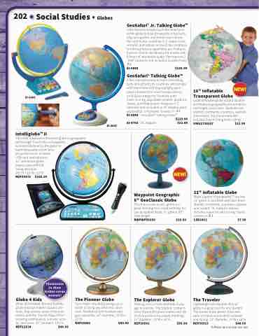 matic scoring, adjustable volume, question repeat, and help button. Requires 4 “C” batteries (not included) or AC adapter (sold separately). 1–4 players. Grades 3+ 1 EI-8895 GeoSafari® Talking Globe$TM129.99