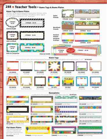 Use these colorful and fun designs for new students, field trips, parties or to label desks, cubbies and folders. Self-adhesive, Name Tags are 31⁄2" x 21⁄2". Name plates are 91⁄2" x 33⁄4". 36 per pack.