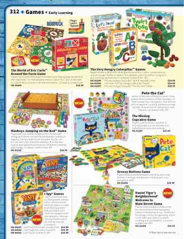 Based on the best-selling book series, these games introduce kids to simple learning con- cepts wrapped up in fun games. Kids develop color recognition, counting and decision-mak- ing skills. Keep on movin’ and groovin’ with Pete the Cat! Grades PreK+ 1