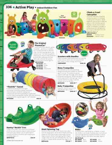 Rock from side to side, spin it, build a den, what- ever the imagination can dream of! Made of strong plastic for both indoor and outdoor play. Raised edges prevent children from getting their fingers caught under the top and eliminates the risk of suf- focation if children hide inside the top. Ages 3–10 AEPG2101 $74.99 ≠