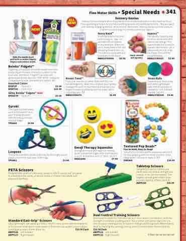 Developed to assist the child who has poor visuo motor coordination, lacks the strength to complete a cutting action, has a tremor and cannot place the scis- sors at a given starting point, or has poor background/foreground differentiation. Ideal for learning the opening/closing action of scissor skills. 45mm, blunt tip. $10.99 Each