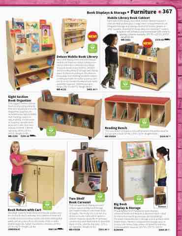 Store and display a ton of books! Deluxe mobile unit features robust construction and an attractive contemporary design that puts books at eye level for children and provides plenty of storage and display space in the front and back. Mounted on heavy duty non-marking lockable casters. Constructed with no visible screws or join- ery for a nice finished furniture look. Some assembly required. Lifetime warranty. 36"W x 141⁄2"D x 493⁄4"H. Weight 98 lbs.
